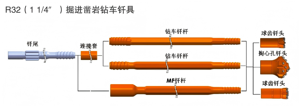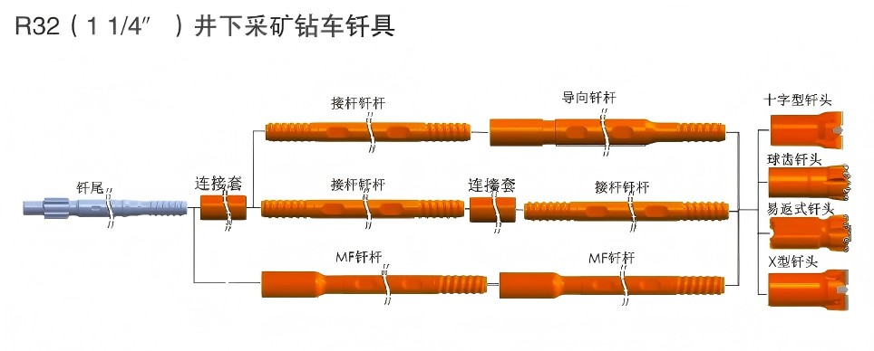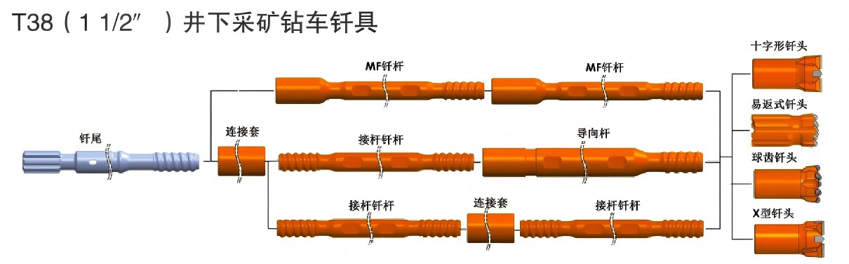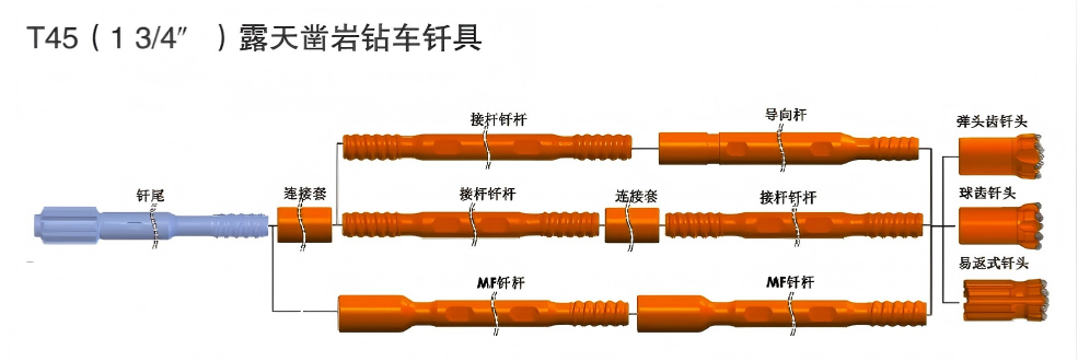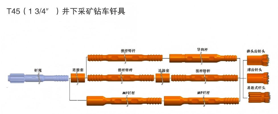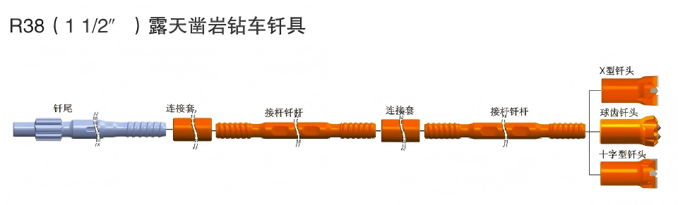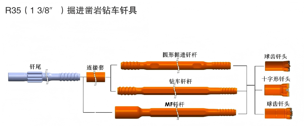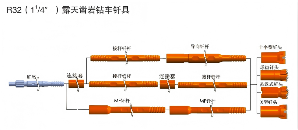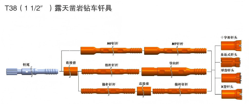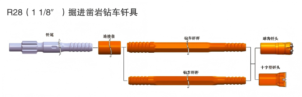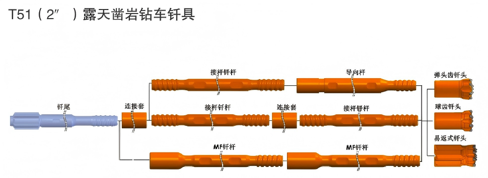 ●旨在适合特定类型的岩石钻头(例如,纽扣钻头,交叉钻头或凿子钻头)和钻井设备(例如液压或气动岩钻)。